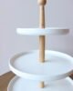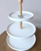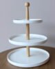Bandeja decorativa de tres niveles con estructura en madera y superficies en acabado blanco que aporta orden y elegancia al espacio. Su diseño limpio y atemporal es ideal para organizar y exhibir objetos decorativos, velas o accesorios en mesas, comedores y cocinas.