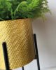 Elegante y versátil, este porta matera combina un acabado dorado texturizado con una base metálica negra que aporta modernidad y estabilidad. Perfecto para resaltar tus plantas y dar un toque sofisticado a salas, habitaciones u oficinas.