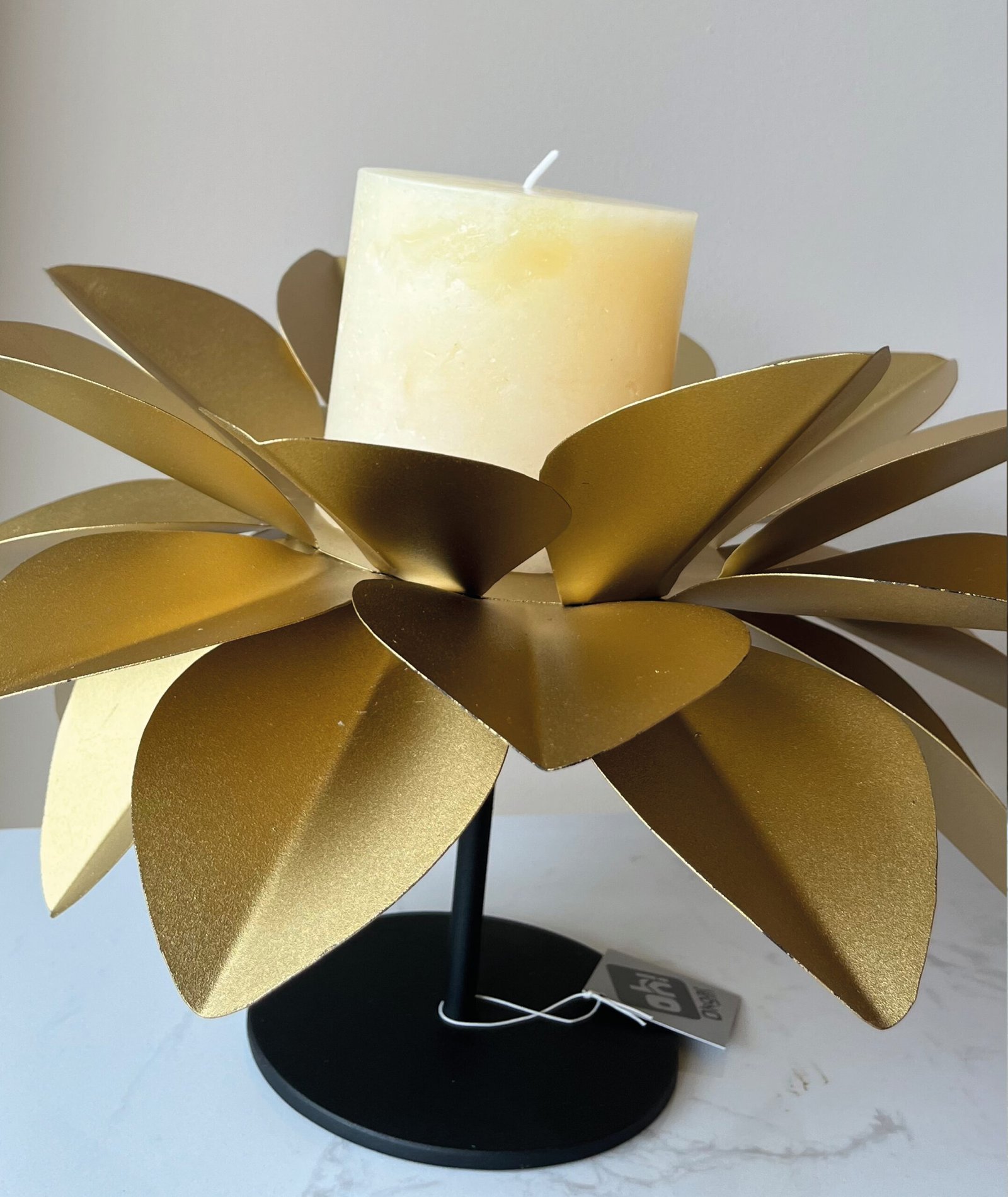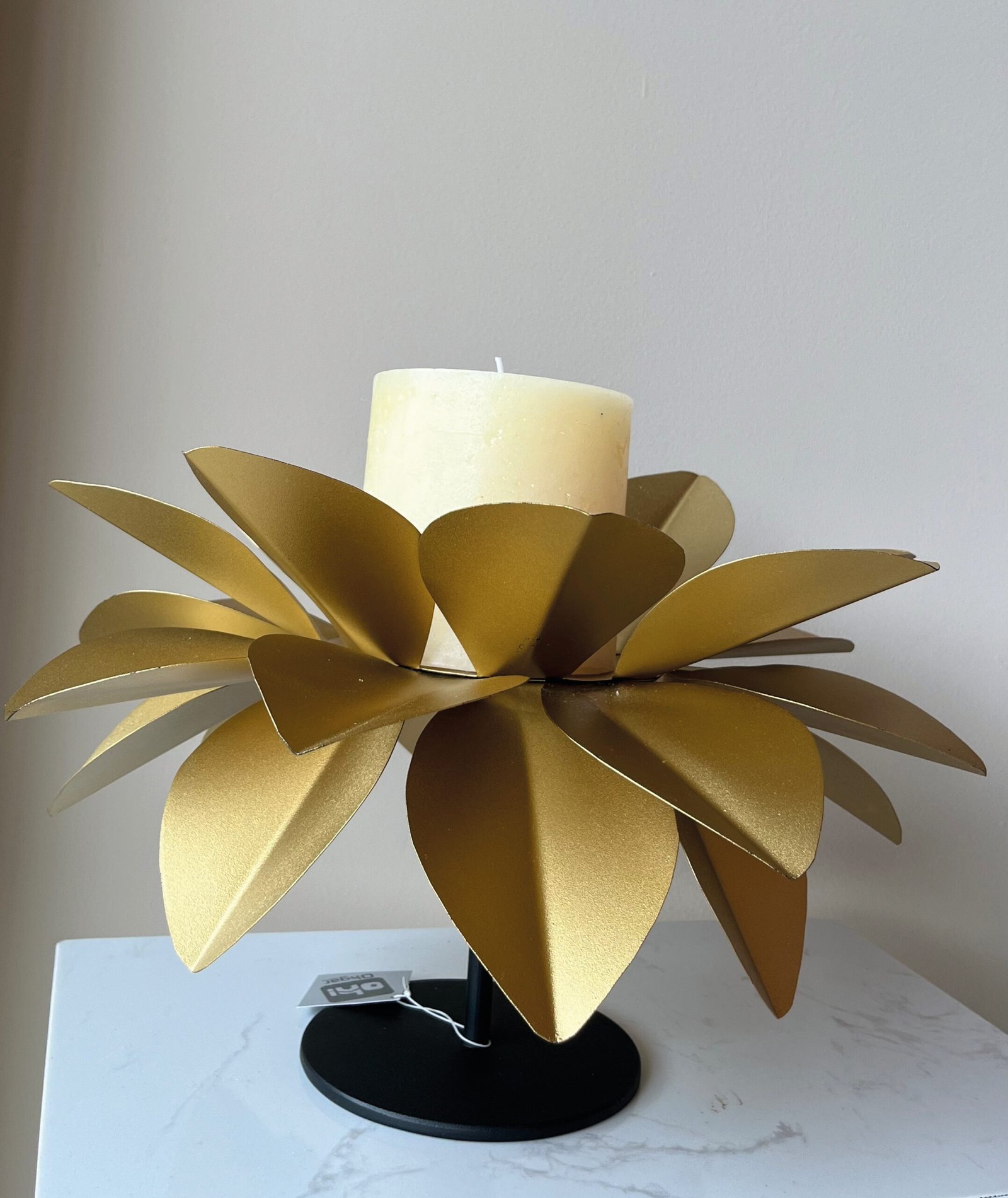 CANDELABRO LOTO DORADO BASE NEGRA