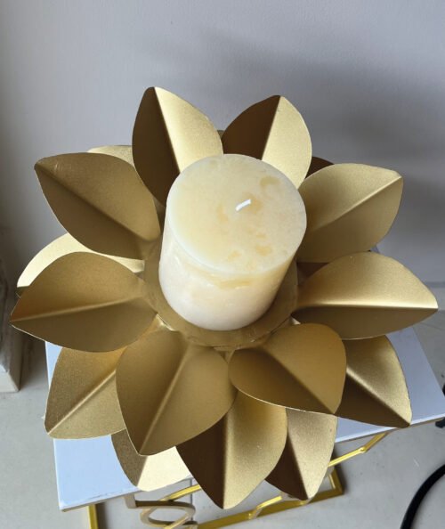 Candelabro Loto Dorado con base alta Negra
