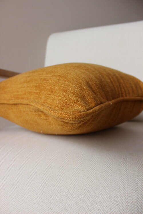 Cojín decorativo elaborado en textil de alta calidad con textura suave y agradable al tacto, en un tono mostaza profundo que aporta calidez y carácter al espacio. Su diseño liso y atemporal lo convierte en una pieza versátil, ideal para combinar con otros cojines estampados o texturas naturales. Perfecto para sofás, poltronas o camas, aportando un acento sofisticado y acogedor a cualquier ambiente.