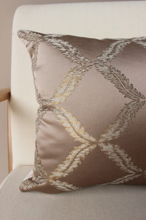 Funda de Cojín decorativo con diseño geométrico bordado que aporta elegancia y profundidad al espacio. Su combinación de tonos tierra y acabado sutilmente brillante crea un efecto sofisticado y atemporal, ideal para salas y alcobas que buscan un acento decorativo cálido y refinado.