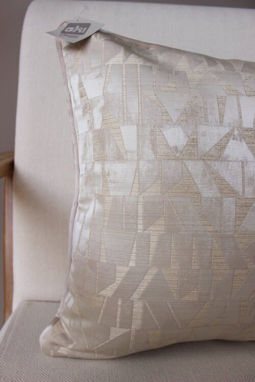 Funda de cojín decorativo con diseño geométrico en relieve que aporta textura y sofisticación al espacio. Su acabado sutil en tonos neutros refleja la luz de manera delicada, creando un efecto elegante y atemporal. Ideal para salas y alcobas que buscan un acento decorativo refinado y versátil.