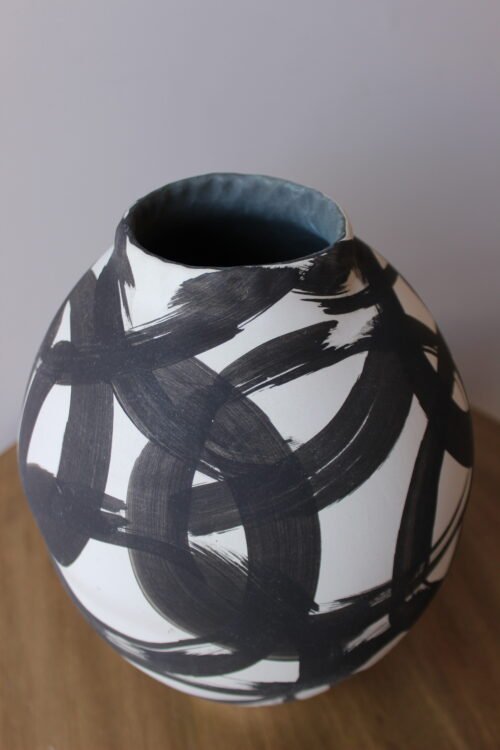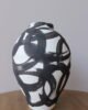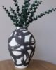 Jarrón decorativo elaborado en cerámica blanca con acabado esmaltado, intervenido con trazos orgánicos en tono negro de inspiración artística. Su diseño expresivo y contemporáneo convierte cada pieza en un acento visual único, ideal para espacios modernos que buscan carácter y personalidad. Perfecto para mesas, consolas o repisas como pieza protagonista