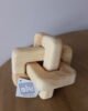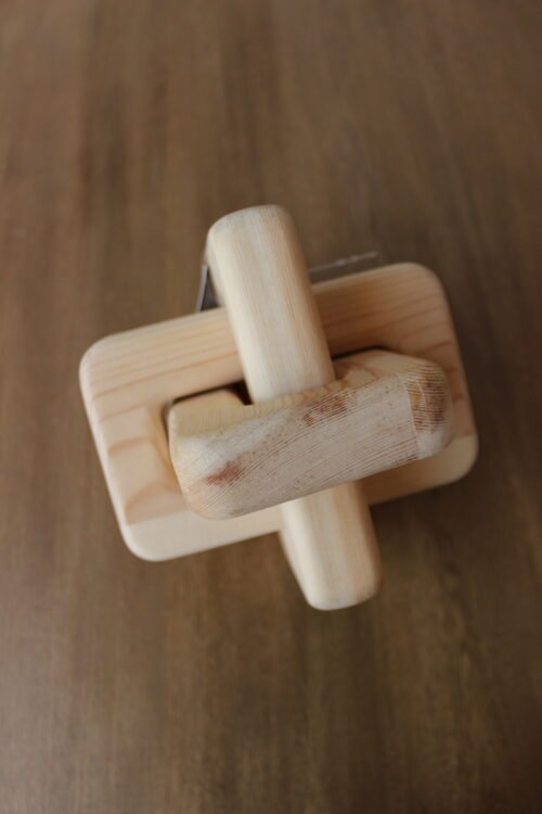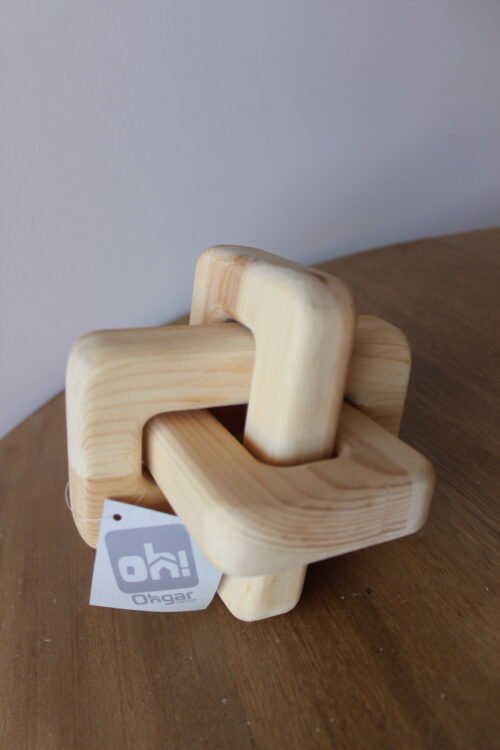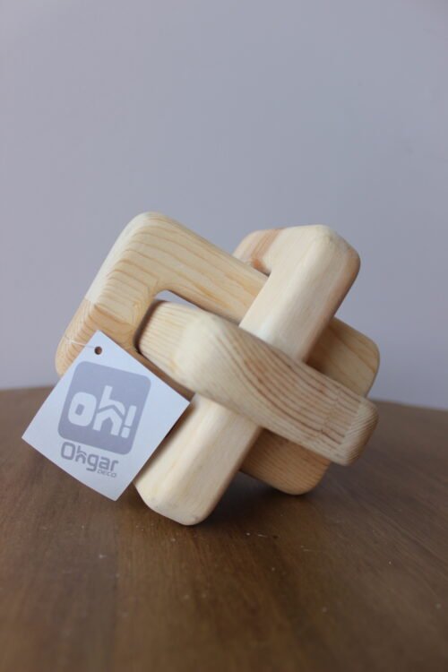 Escultura decorativa elaborada en madera natural, de diseño geométrico entrelazado que aporta volumen y dinamismo visual. Su acabado suave y textura orgánica resaltan la belleza del material, convirtiéndola en una pieza contemporánea y atemporal. Ideal para mesas de centro, consolas o repisas como acento escultórico.