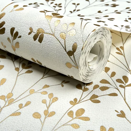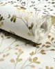 Papel de colgadura decorativo con diseño botánico de ramas delicadas y hojas estilizadas, en tono terracota suave sobre fondo marfil con textura sutil. Su patrón ligero y armonioso aporta calidez, naturalidad y un aire acogedor al espacio, sin recargarlo. Ideal para habitaciones, salas o espacios íntimos donde se busque un ambiente sereno, luminoso y elegante, perfecto para estilos naturales, románticos o contemporáneos suaves.