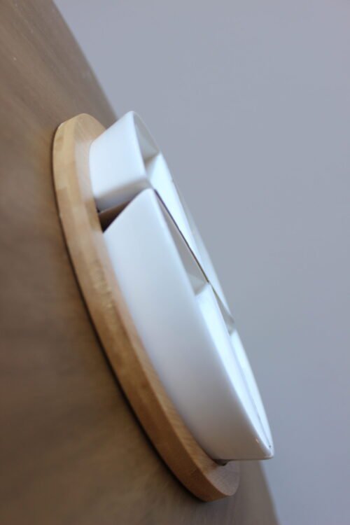 Bandeja organizadora elaborada en cerámica blanca con acabado brillante, compuesta por cuatro compartimentos independientes sobre base circular de madera natural. Su diseño funcional y minimalista permite organizar y presentar alimentos, snacks o accesorios decorativos con estilo. Ideal para mesas de centro, comedores o cocinas, aportando orden y un toque contemporáneo al espacio.