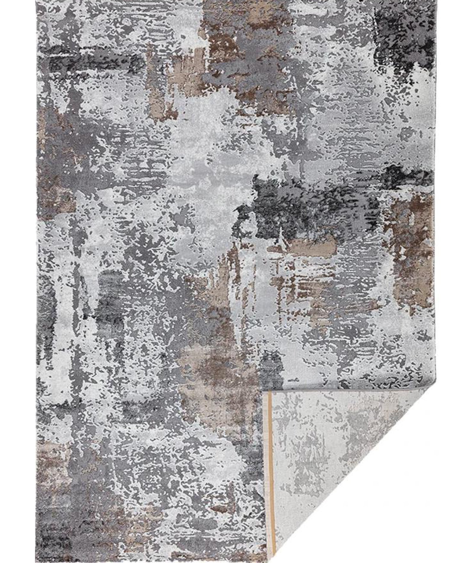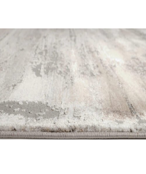 Es un tapete con un diseño abstracto y artístico en tonos neutros. Complementa perfectamente una decoración elegante y moderna, es ideal para sala, interiores, habitación e incluso el comedor.