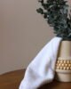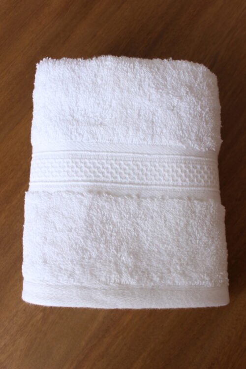 Toalla blanca en algodón suave y de alta absorción, ideal para el uso diario. Su acabado con franjas tejidas aporta un detalle clásico y limpio que combina con cualquier estilo de baño. Resistente, cómoda y fácil de lavar, perfecta para mantener una sensación de frescura y orden en el hogar.