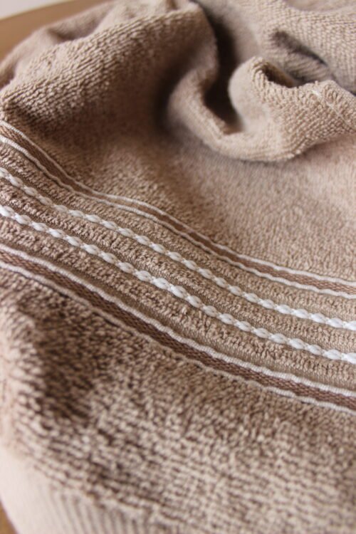 Toalla Taupe elaborada en algodón suave y absorbente. Su diseño con franjas decorativas aporta un toque cálido y natural, ideal para baños o cocinas con estilo neutro y atemporal. Resistente, práctica y fácil de combinar, perfecta para el uso diario y para dar una sensación de orden y armonía al espacio.
