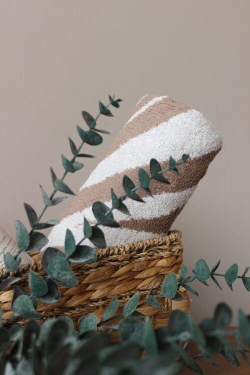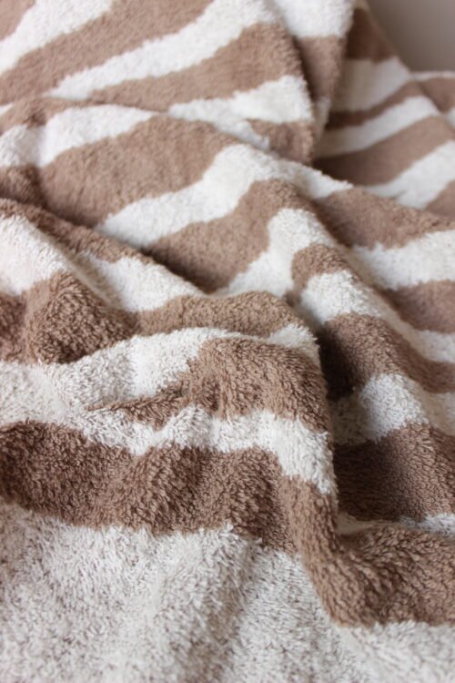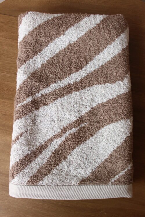 Toalla de cuerpo elaborada en algodón de alta absorción, con diseño de franjas orgánicas en tonos beige y café que aportan movimiento y carácter al espacio. Su textura esponjosa brinda suavidad y confort al contacto con la piel, mientras que su patrón decorativo la convierte en un acento protagonista dentro del baño. Ideal para baños contemporáneos, estilos naturales o ambientes tipo spa con personalidad.