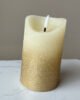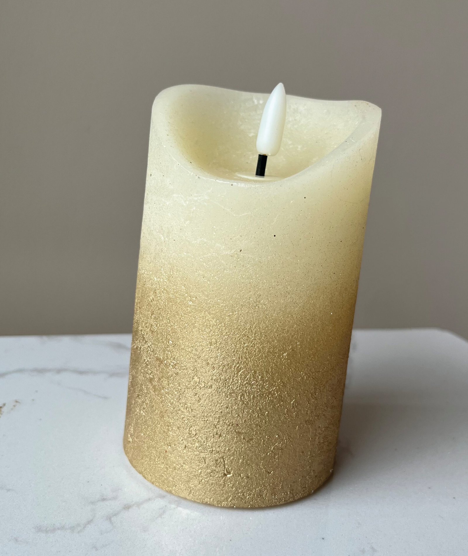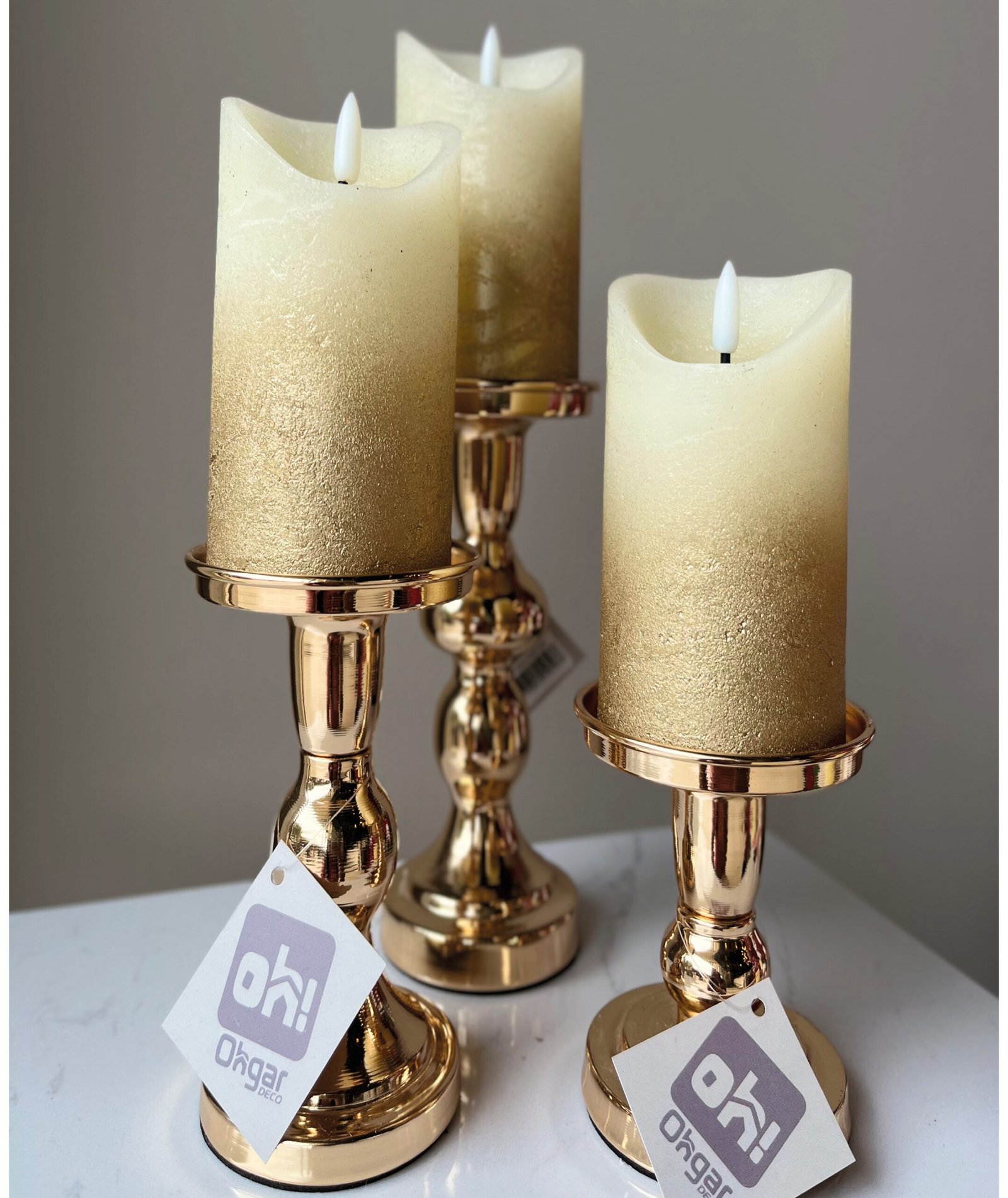 Elaborada en parafina real, esta vela decorativa combina elegancia y funcionalidad. Su acabado en tonos dorados aporta calidez y un brillo sutil que realza cualquier ambiente. Funciona con tres pilas AAA, ofreciendo una iluminación suave y segura, ideal para crear atmósferas acogedoras en salas, comedores o dormitorios.